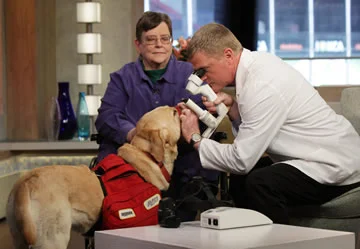 Dr. Bill Miller, the Founder of the ACVO/Epicur program, examines 'Cheerio' to promote the event on the set of Good Morning America.